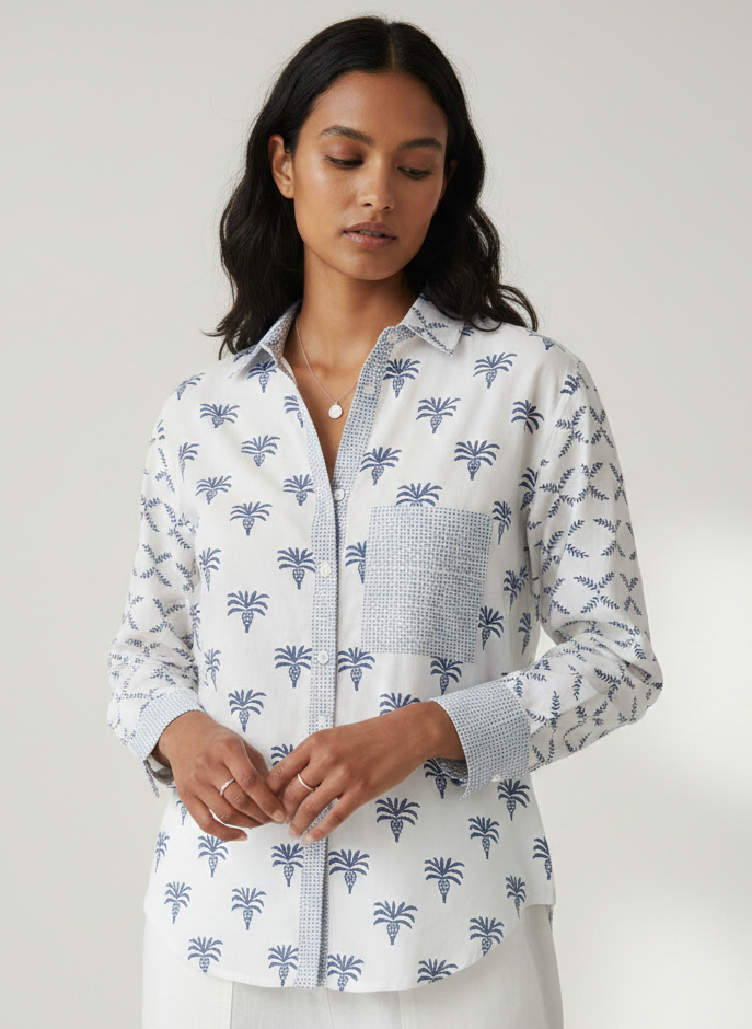 Each piece in Sigrid Olsen’s line is created in small batches using natural fibers chosen for breathability and comfort in warm climates. Prints and embroidery begin as original artworks by Sigrid, then are brought to life by skilled artisans in India using traditional techniques and low-impact dyes.