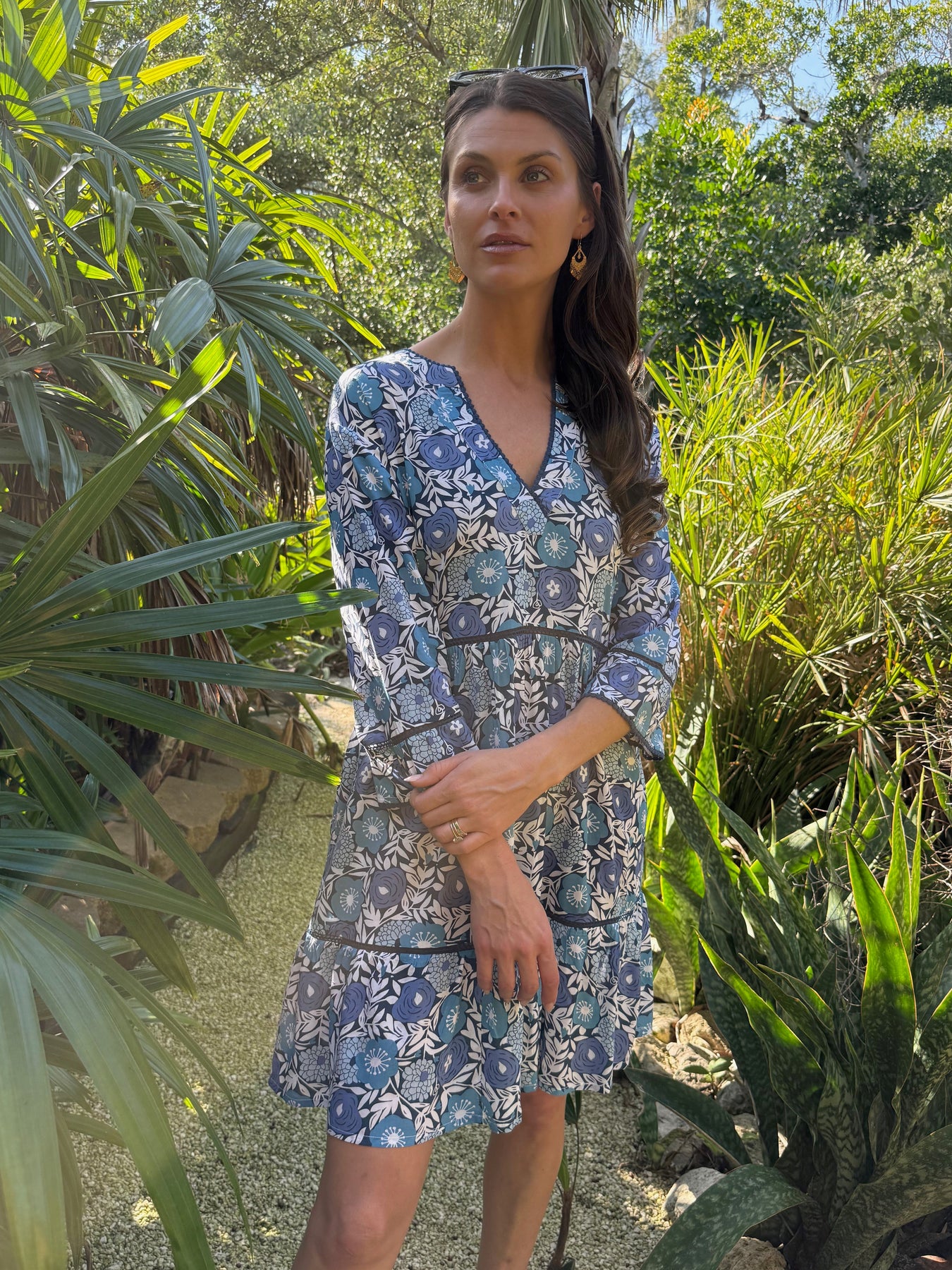 Moorea has been our most popular dress for the past 5 years, and it's easy to see why. This knee-length dress features multiple graceful tiers that create beautiful movement and flow, making it perfect for everything from casual outings to special occasions. Delicate lace accents between each tier and along the neckline add an elegant touch that elevates the design. The three-quarter sleeves finish with a gentle flounce at the cuff, offering both style and comfort. What makes this dress truly special is the Poppy Print—a vibrant design taken directly from Sigrid's original hand-carved stamp. Each piece is printed by skilled artisans in India, giving each piece a unique feel. This thoughtful craftsmanship means you're wearing a piece of wearable art that celebrates traditional textile techniques and supports artisan communities. Whether you're looking for a dress that moves beautifully, celebrates handmade quality, or simply makes you feel confident and supported in what you wear, the Moorea Dress delivers on all fronts.