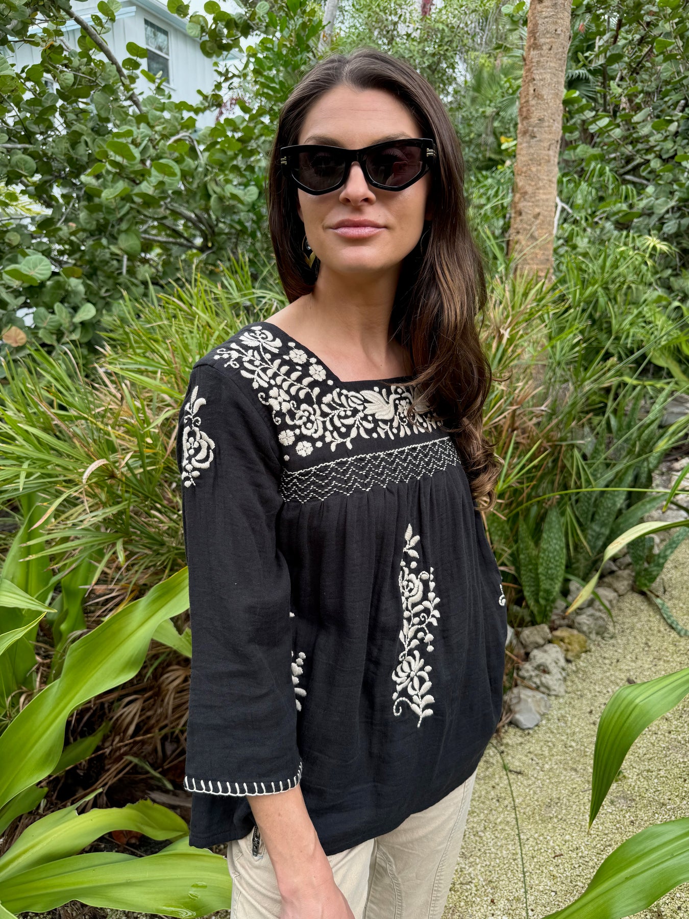 A re-imagining of our beloved Luisa Blouse, the Grazia features an elegant 3/4 sleeve in a color palette that transitions beautifully through the shoulder seasons. Crafted from our signature super soft cotton double gauze, this blouse delivers the same exquisite hand-smocking and intricate embroidery details that made the original a customer favorite. The thoughtful sleeve length makes it wonderfully versatile—pair it effortlessly with jeans for weekend ease or dress it up with tailored pants for a polished look. This special style was created in direct response to your requests, bringing together timeless design with the comfort and quality you've come to expect from us. A wardrobe essential that feels as good as it looks.