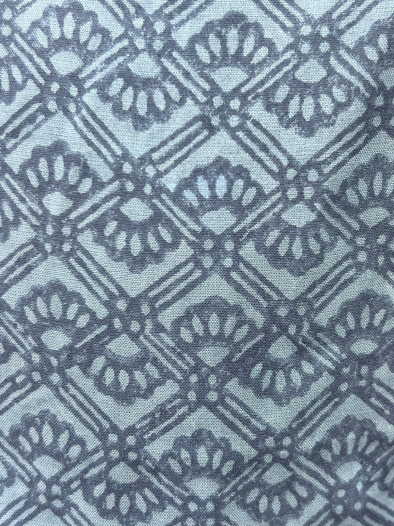 Close-up of a blue fabric with a geometric pattern
