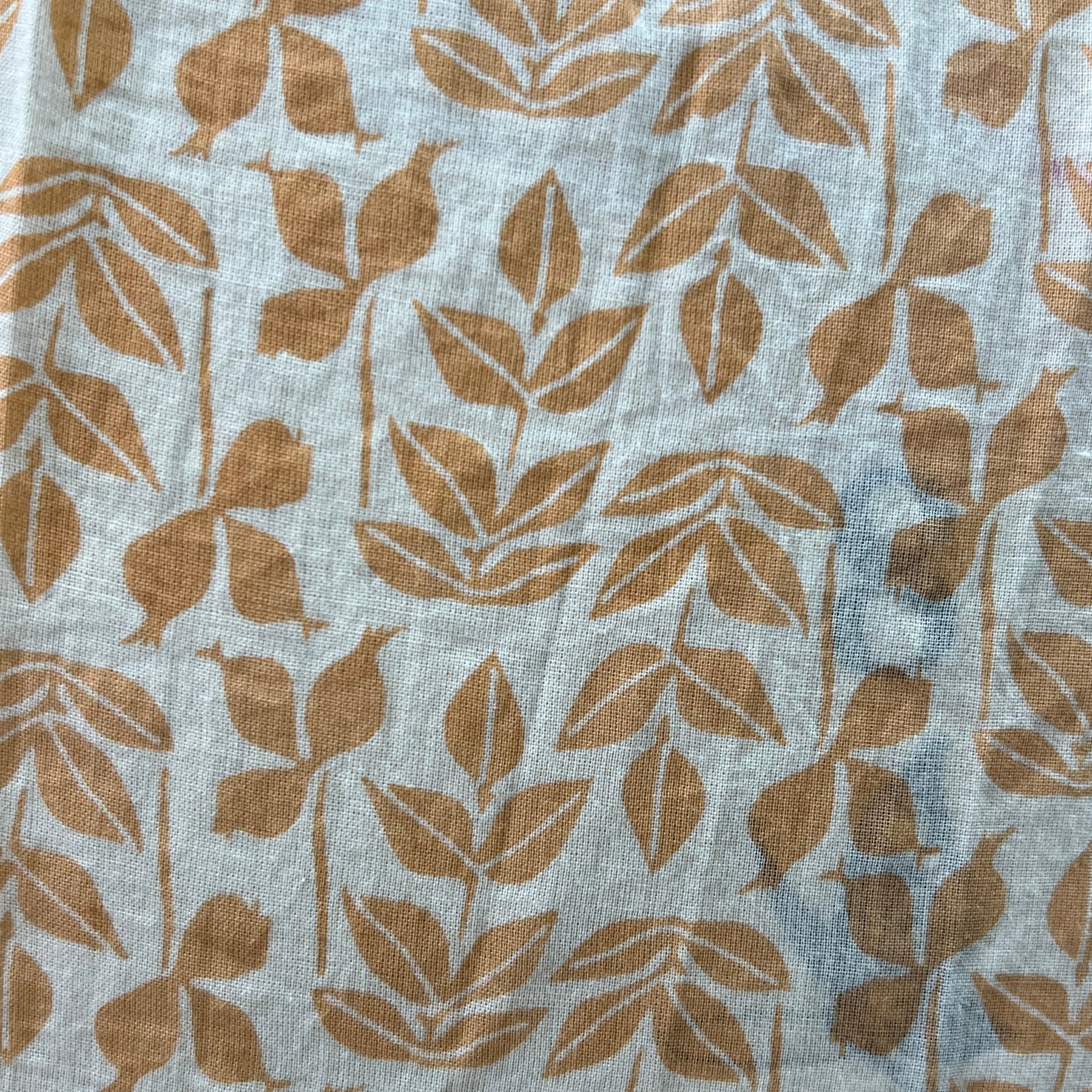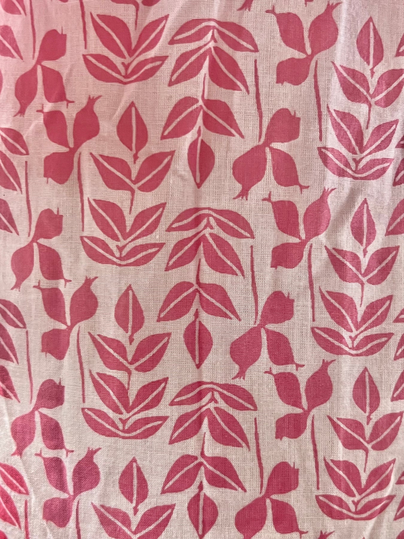 Fabric with red leaf pattern on a beige background